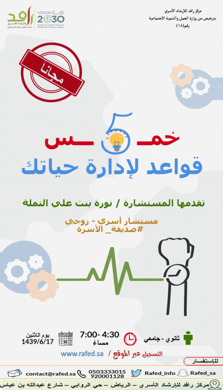 | عنوان الفعالية | 5 قواعد لإدارة حياتك(انتهت) |