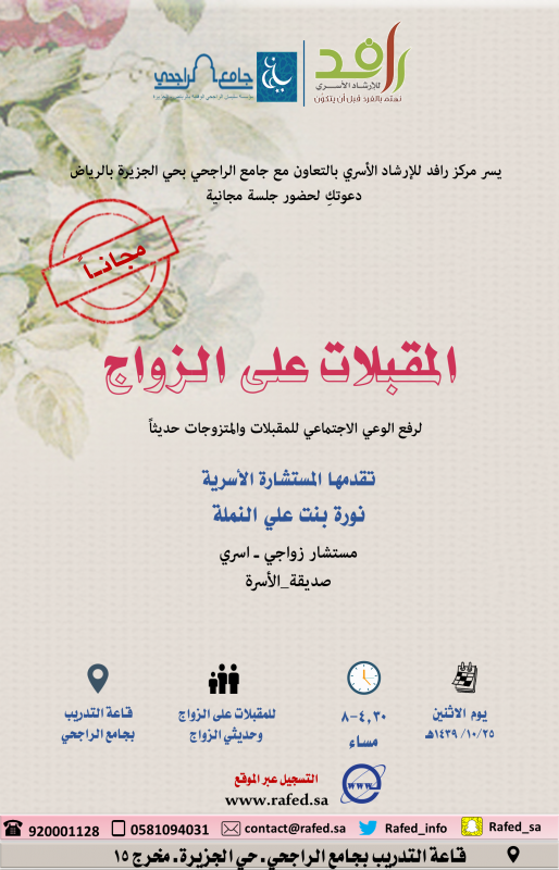 يسر مركز رافد لإرشاد الأسري بالتعاون مع جامع الراجحي بحي الجزيرة بالرياض