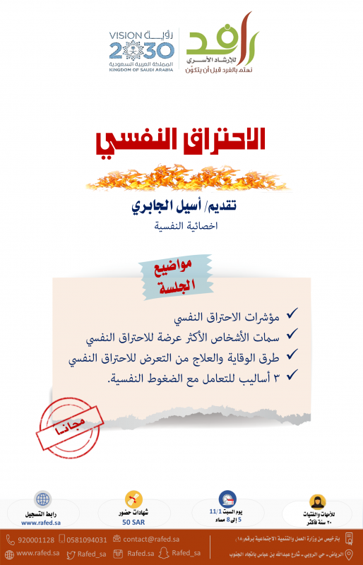 | عنوان الفعالية | الاحتراق النفسي(انتهت) |