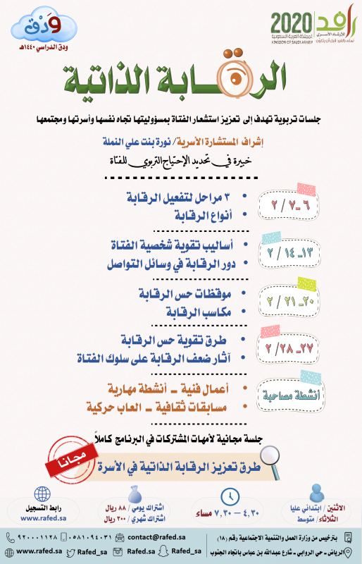 | عنوان الفعالية | الرقابة الذاتية ... ودق الدراسي لعام 1440هـ(انتهت) |