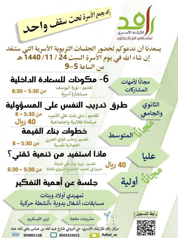 يسعدنا مشاركتكم بجلسات يوم الأسرة التربوي