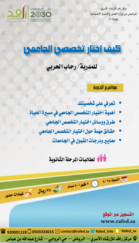 | عنوان الفعالية | كيف اختار تخصصي الجامعي(انتهت) |