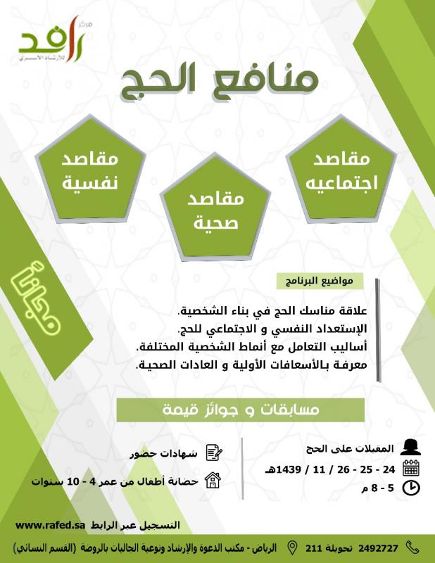 | عنوان الفعالية | منافع الحج(انتهت) |