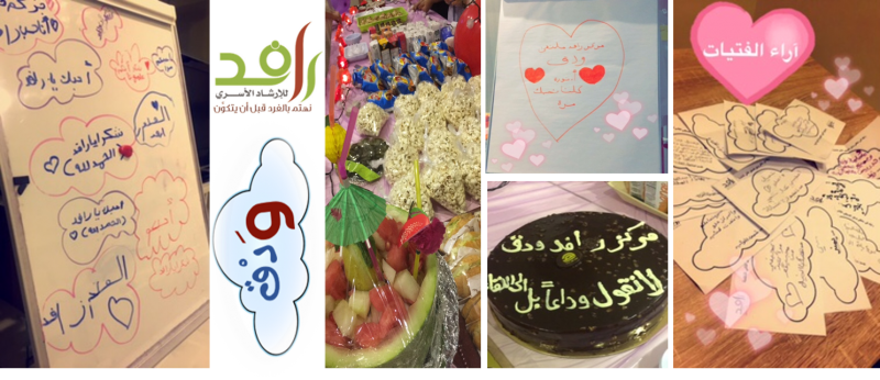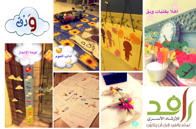 تم بحمدالله اختتام فعاليات ملتقى ودق الصيفي الثاني للناشئة المقام بمركز رافد للإرشاد الأسري .. وقد تم إقامة هذا الملتقى تحت شعار ( أصنع نجاحي بتعديل سلوكياتي ) على مدى 3 أسابيع من الفترة 9\11\1438هـ وحتى 29\11\1438هـ حيث كان يستهدف الفئة العمرية للناشئة من 7 - 12 سنة (فتيات المرحلة الابتدائية) ومن أهم أهداف هذا الملتقى تهذيب شخصية الفتاة واغتنام أوقاتهنَ بما يعود عليهم بالنفع وتعزيز بعض القيم والسلوكيات من خلال تقديم جلسات تربوية هادفة وورش عمل وأنشطة تدعم هذا الهدف حيث احتوى الملتقى على مجالات متعددة منها الجانب المهاري الذي تعلمت الفتيات من خلاله طرق عملية لمواجهة النقد والتعامل مع أنماط الشخصيات ودوائر التعامل والأعمال المثمرة داخل صرح الأسرة بالإضافة للجانب النفسي وتعلم أساليب قيادة الذات والعديد من الجوانب الأخرى والآداب والسلوكيات التي تثري حصيلة الفتاة