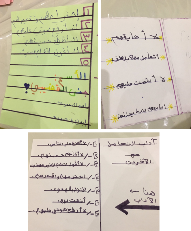 نشاط لوحات من صنع الفتيات | جلسة تربوية بعنوان " أداب التعامل مع الآخرين "